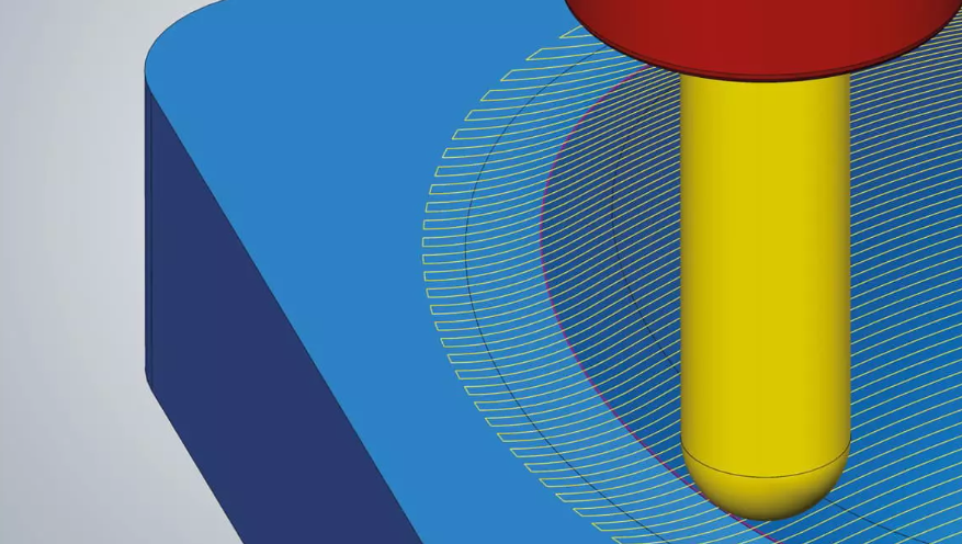 Flawless transitionsเพื่อให้มั่นใจถึงประสิทธิภาพในการกัด ชิ้นงานจึงมักถูกแบ่งออกเป็นส่วนงานตัดเฉือนต่างๆ และตัดเฉือนด้วยเครื่องมือและส่วนป้อนเข้าที่แตกต่างกัน ฟังก์ชัน "Smooth overlap" ช่วยปรับปรุงคุณภาพพื้นผิวของส่วนเปลี่ยนผ่าน ทำให้ส่วนเปลี่ยนผ่านเรียบเนียนจนวัดได้ยากและแทบมองไม่เห็นด้วยตาเปล่า |