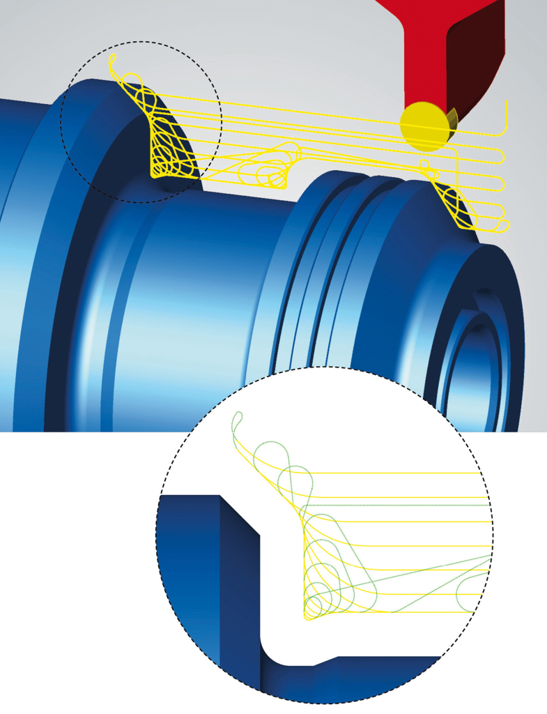 HPC turning on turn-mill machines การกลึงประสิทธิภาพสูงมอบข้อดีมากมายให้คุณโดยไม่ต้องเสียเวลาตั้งโปรแกรมเพิ่มเติมใช้เส้นทางเครื่องมือแบบโทรคอยด์(trochoidal toolpath)ที่มีเส้นทางเชื่อมต่อที่เหมาะสมที่สุดขณะกลึงทำให้กระบวนการกลึงมีเสถียรภาพและมีประสิทธิภาพมากขึ้นโดยเฉพาะอย่างยิ่งกับวัสดุที่กลึงได้ยากการกลึงจะเกิดขึ้นในทิศทางที่สม่ำเสมอหรือในรูปแบบซิกแซกการป้อนเข้าจะเกิดขึ้นในการเคลื่อนที่แบบเชิงเส้นหรือแบบทางลาดเม็ดมีดจะถูกใช้งานอย่างเหมาะสมและเต็มประสิทธิภาพอยู่เสมอขึ้นอยู่กับการใช้งานในการกลึง |